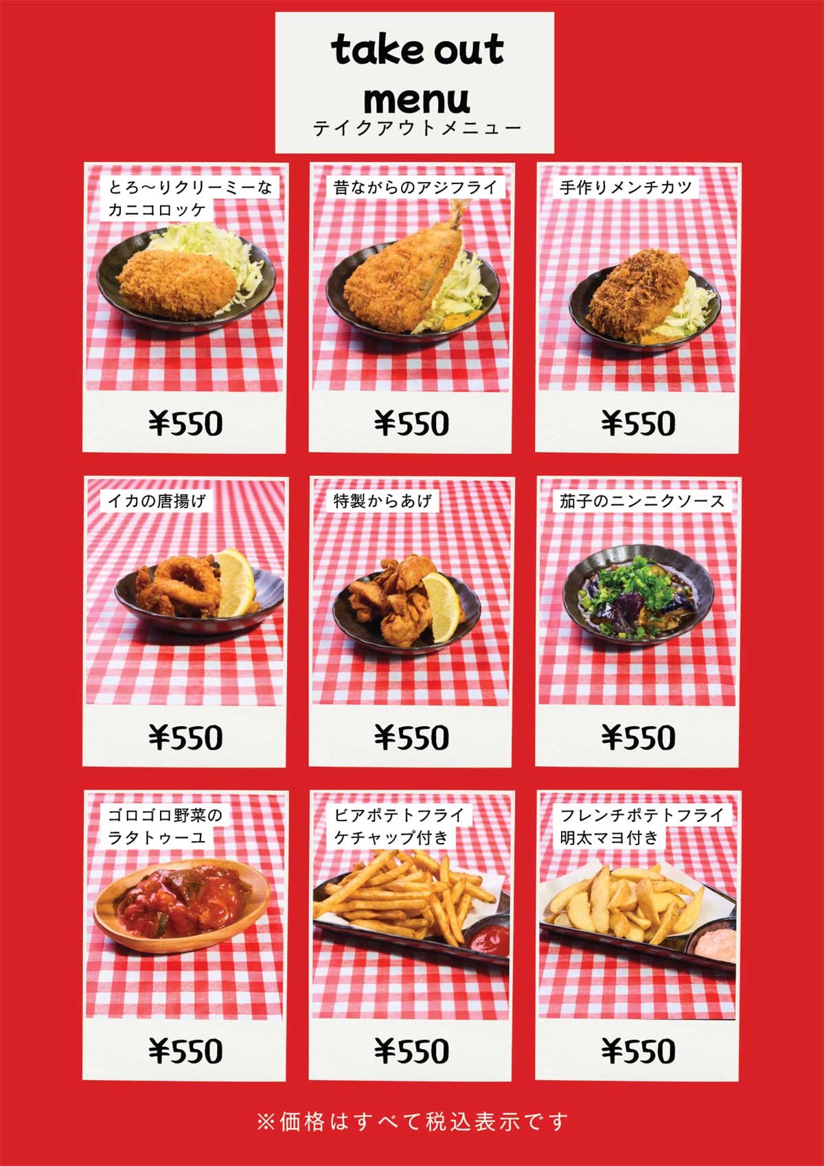 3月中の開始を目標に、テイクアウトの導入を検討しております。 開始後は、ランチタイム・ディナータイムの混雑状況によって、 お渡しまでお時間を頂戴する場合や、 やむを得ず受付を一時停止させていただくことがございます。 何卒ご理解のほど、よろしくお願い申し上げます。